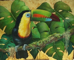 Dancing Cranes 22x30 watercolor w/gold leaf